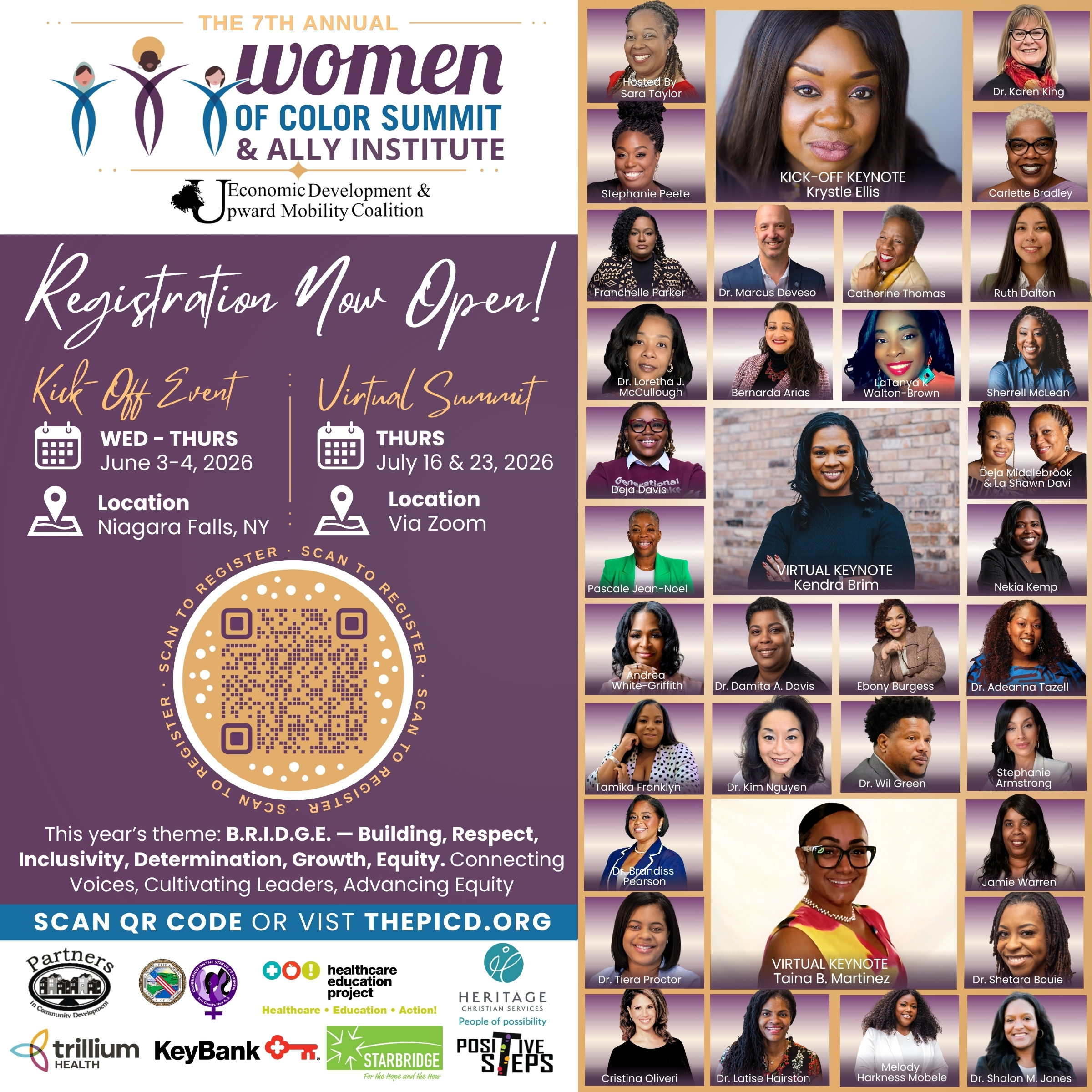 Join us at the seventh annual Women of Color Summit (WOC) with more than 300 women and allies across New York State and various regions for a two day in-person professional development conference. WOC will be held in Niagara Falls, NY, on June 3-4, 2026. Additionally, the series will continue with two virtual sessions on Thursday, July 16th and July 23rd. This year’s theme: B.R.I.D.G.E. — Connecting Voices, Cultivating Leaders, Advancing Equity
